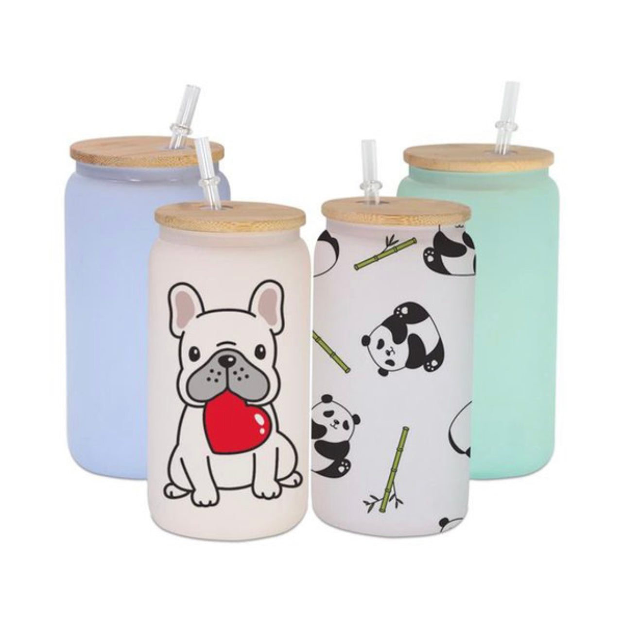 16oz Blank Sublimation color changing glass Jar Cans Tumblers (Includes Bamboo Lid & Straw)