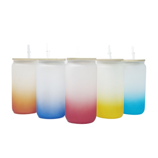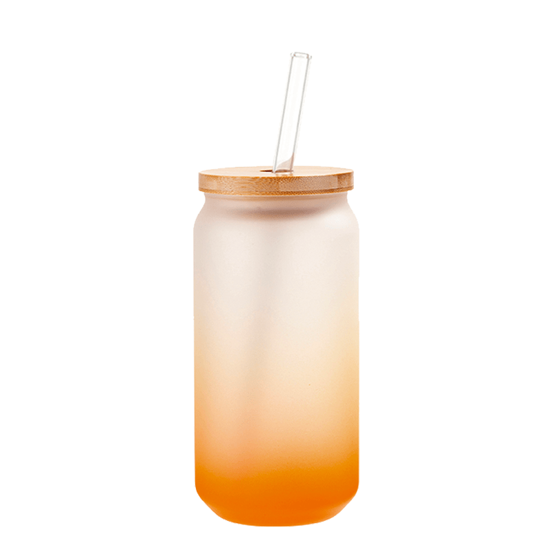 16oz Sublimation blank glass Jar Cans ombre gradient Tumblers (Includes Bamboo Lid & Straw)