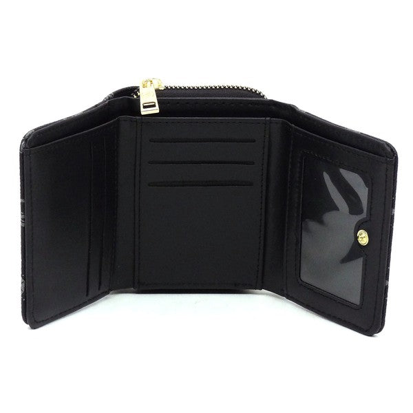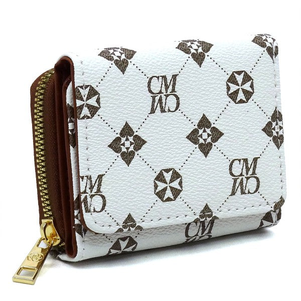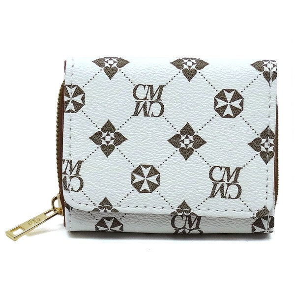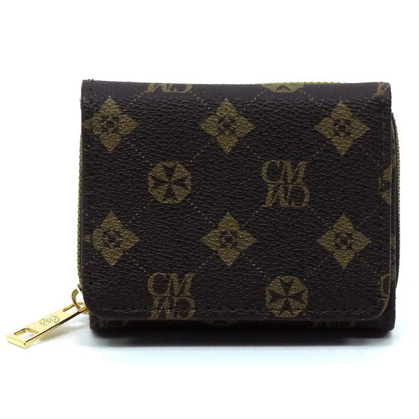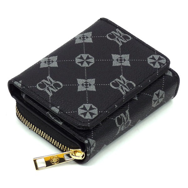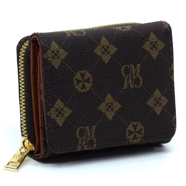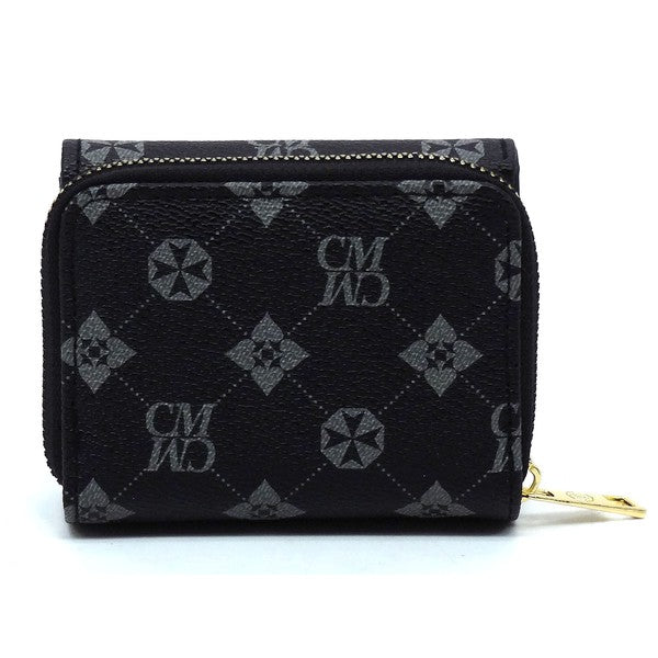 CM Monogram Tri-fold Wallet Faux vegan leather Push-snap & Zip around closure Gold-tone hardware L 4.5 * H 3.5 * W 1.5
