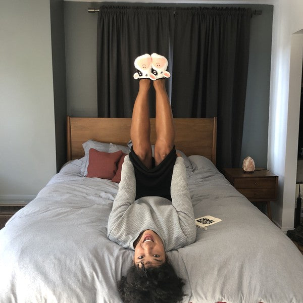 The plush and inside base are super soft and nice on your feet, they keep your feet nice and warm.