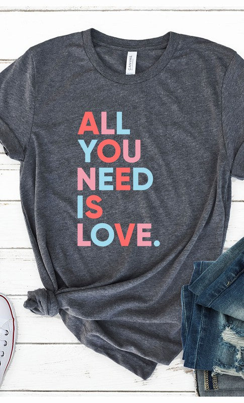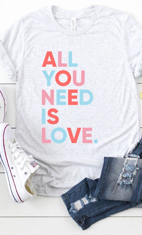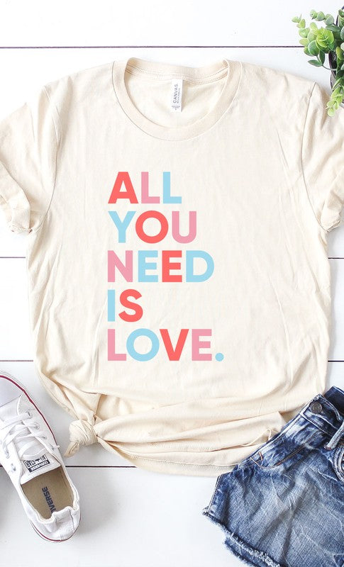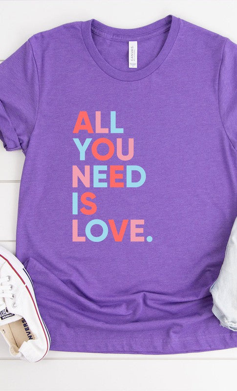 All You Need is Love Tee PLUS. Most t-shirt colors are 52/48 Airlume combed and ringspun cotton/polyester, Athletic Heather & Black Heather are 90/10 airlume combed and ringspun cotton/polyester. White, cream, canvas red, lilac, mint are 100% cotton.