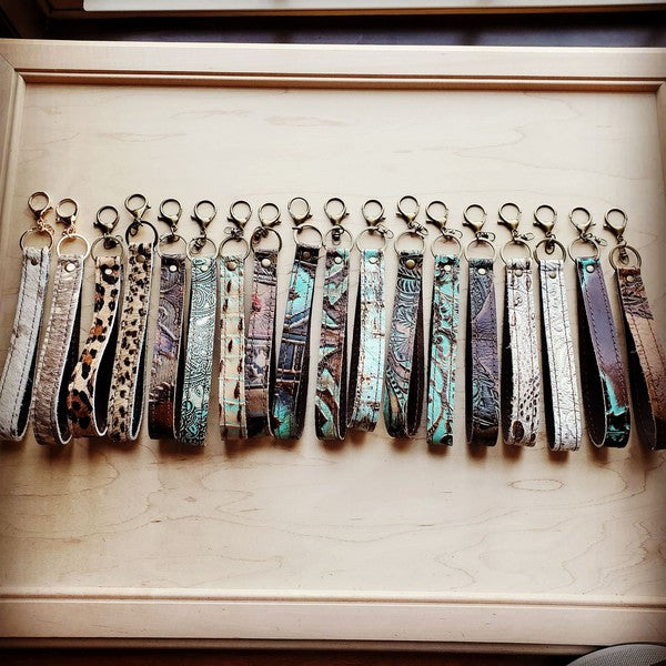 Genuine LeatherHandmade1" wide by 8" in length Backed in genuine leather sewn to hideEmbossed HideHandmade Genuine Leather Key Chain is sourced and made in Texas.Comes with an attached clip