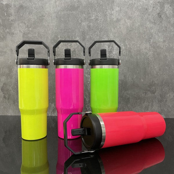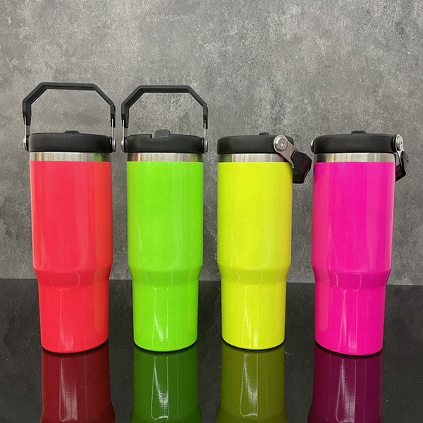 These 30oz neon tumblers are a must-have for any on-the-go lifestyle! Made with durable stainless steel, these tumblers come in 4 vibrant neon colors to add a pop of fun to your day. Order now and get ready to stay hydrated and stylish.