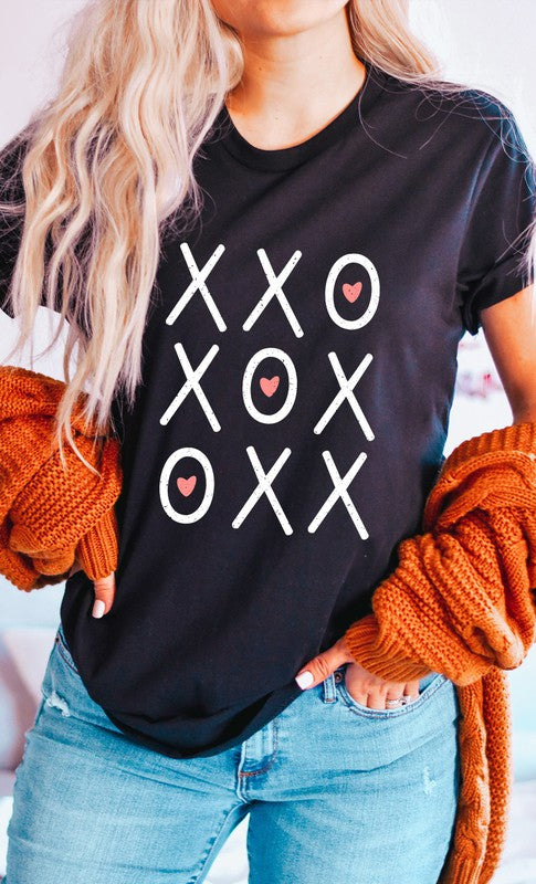 XOXO Heart Tic Tac Toe Valentines PLUS Graphic Tee T-Shirt