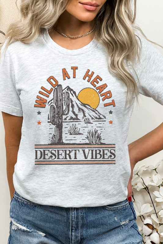 Introducing our Wild At Heart Desert Vibes Cacti Sun Graphic Tee, perfect for those with a free-spirited and adventurous mindset. White and Cream tees are 100% cotton, Ash tees are 99/1 cotton/poly. Peach is 52/48 cotton/poly. Available in various sizes, it's an excellent addition to boutiques and outdoor-themed stores. Let your customers embrace their wild side with our Wild At Heart Desert Vibes Cacti Sun Graphic Tee. Order now and let their style shine! By Kissed Apparel.