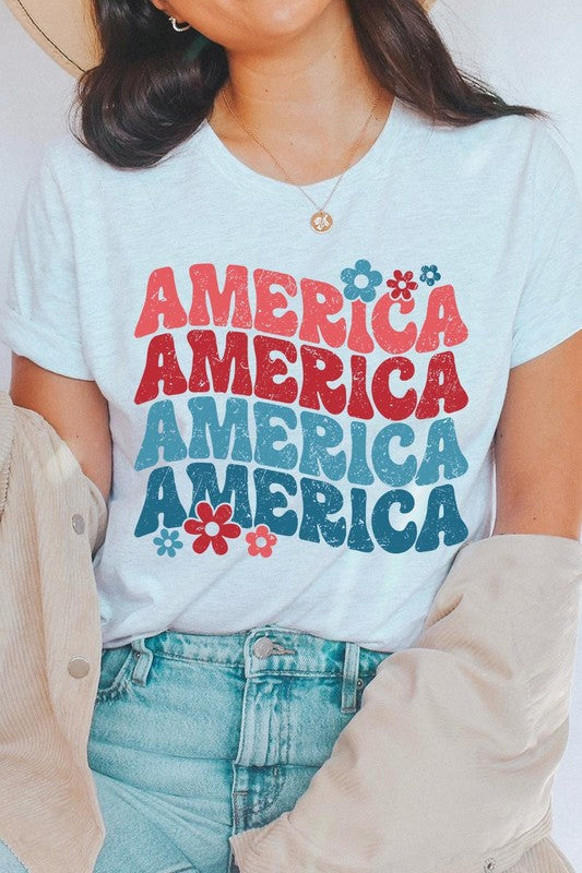 Groovy America USA 4th Of July Graphic T Shirts.