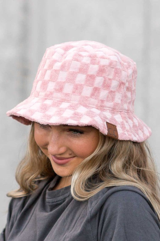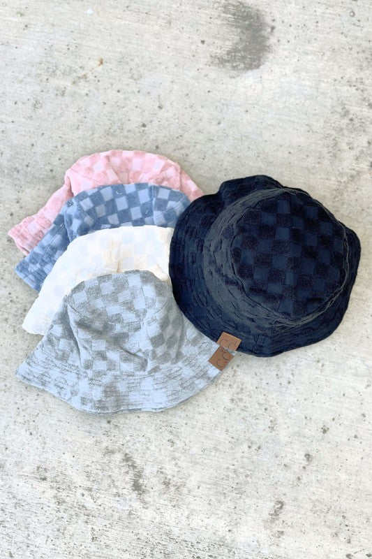 This trendy checkered pattern is even better in CC's designer comfy terry cloth. The adjustable strap gives it a perfect fit every time. Keep that sun off of you while hiking, at the beach, or wear it for a stylish day out shopping.