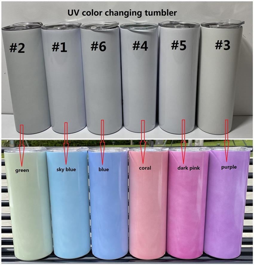 Experience the ultimate in chic and practical drinkware with our UV Color Changing & Glow In Dark Combo Tumblers. Crafted from premium stainless steel, these 20oz straight skinny tumblers feature a BPA-free design and come with a lid and straw. Perfect for keeping your drinks at the ideal temperature and making a stunning statement with their color-changing and glow-in-the-dark capabilities. Upgrade your daily sipping experience today.