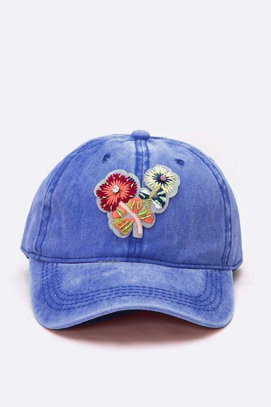 Embroidered Flower Washed Cotton Cap