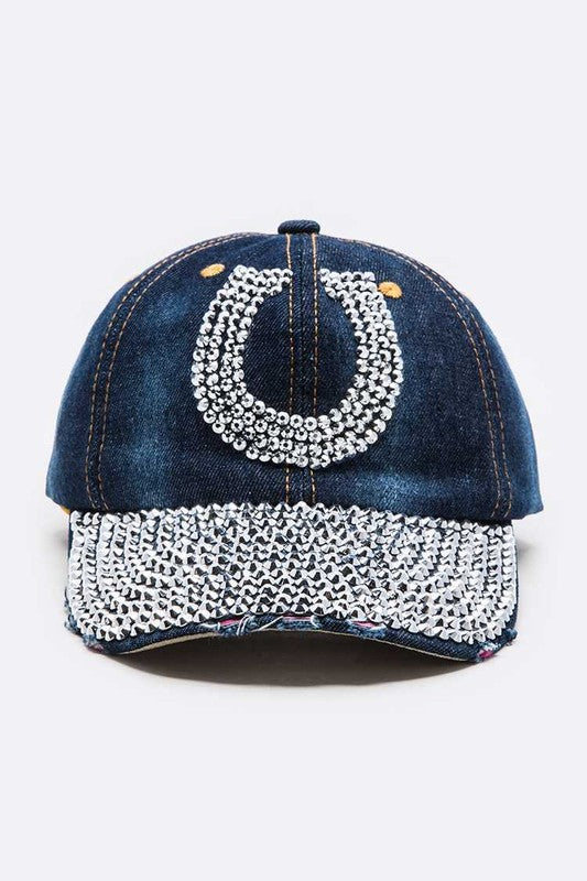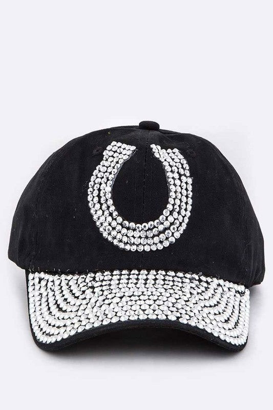 Horse Shoe Crystal Embellished Cotton Cap