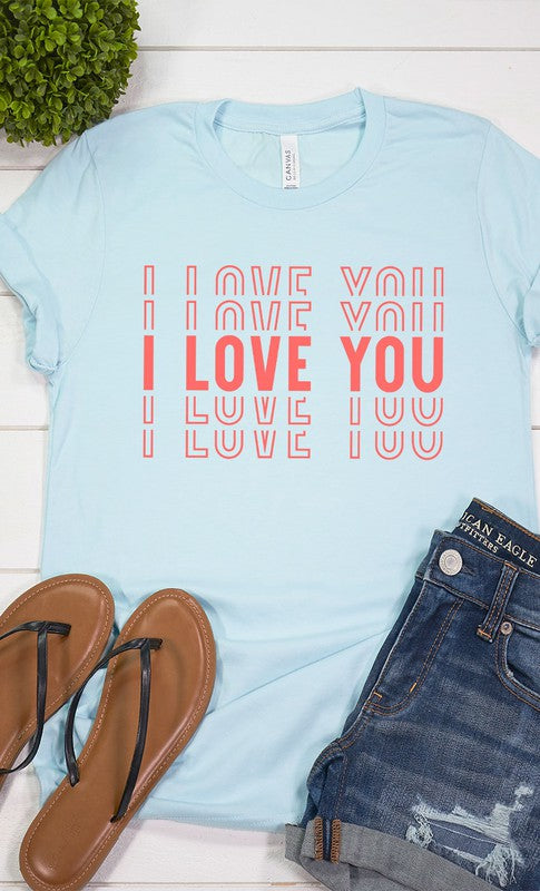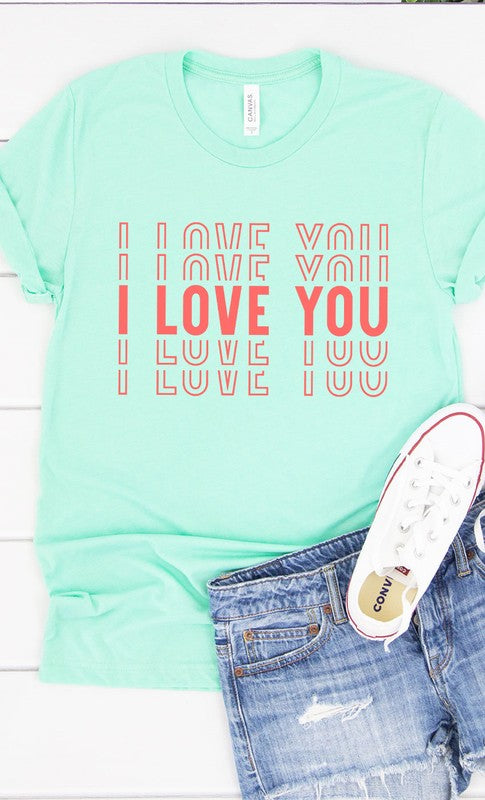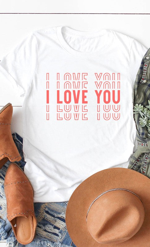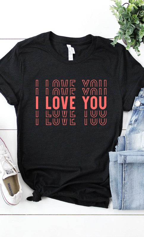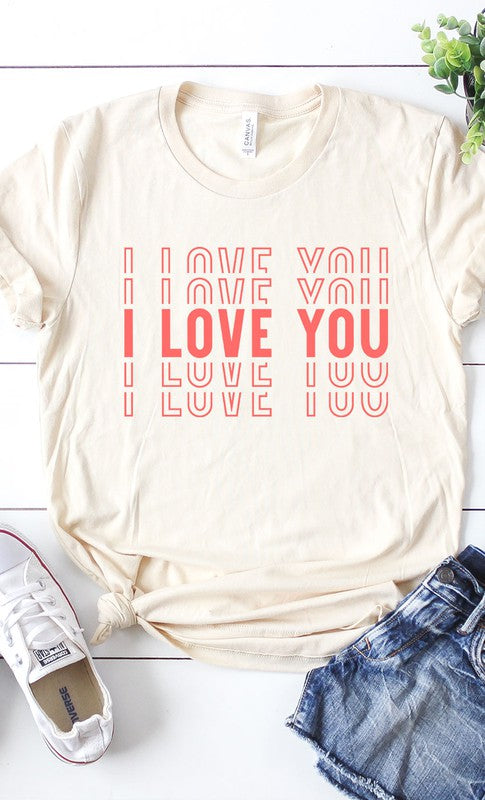 I Love You Graphic Tee PLUS. Most t-shirt colors are 52/48 Airlume combed and ringspun cotton/polyester, Athletic Heather & Black Heather are 90/10 airlume combed and ringspun cotton/polyester. White, cream, mint are 100% cotton. Ash is 99/1.