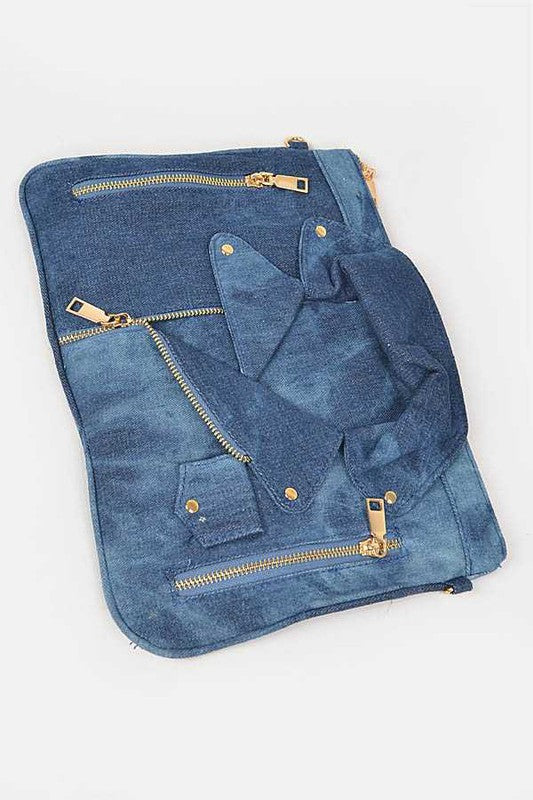 Width - 13"Depth - 0.75"Height - 9.5" Composition - Denim & Mix MetalsLead & Nickel CompliantShoulder Chain Included