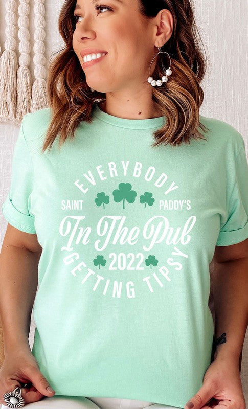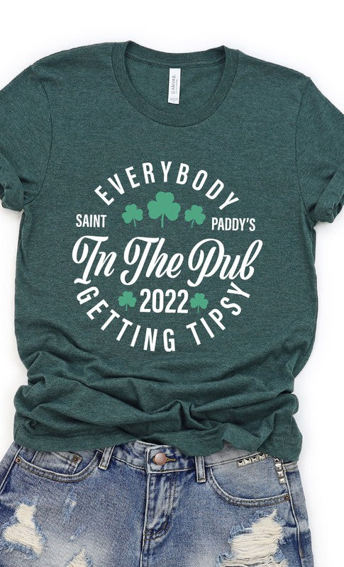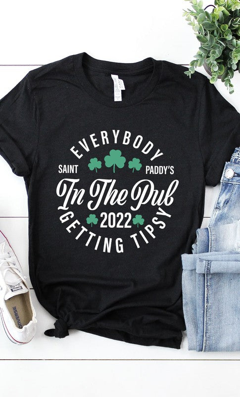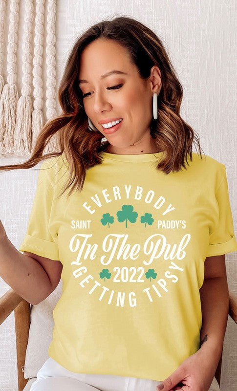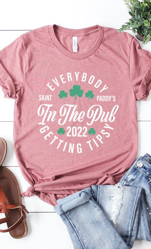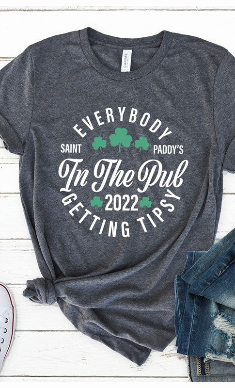 In The Pub Graphic Tee PLUS. Most t-shirt colors are 52/48 cotton/polyester, Athletic Heather & Black Heather are 90/10 cotton/polyester. White, cream, canvas red, lilac, pink, and mint are 100% cotton. Ash is 99/1.