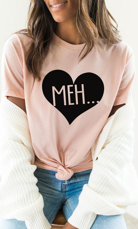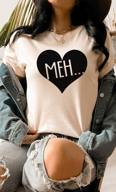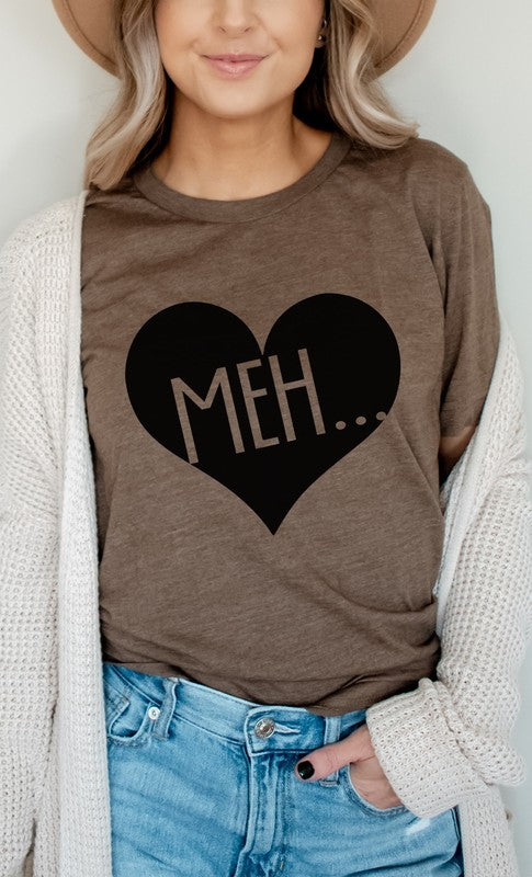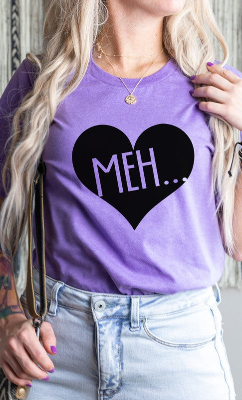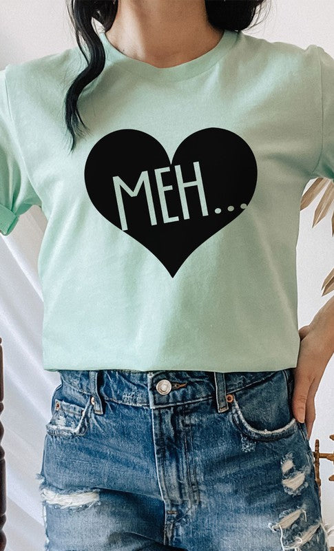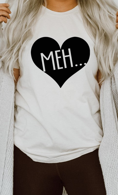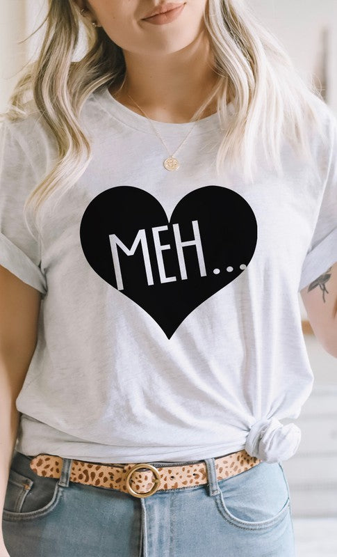 Meh Black Heart Valentines Graphic Tee T-Shirt