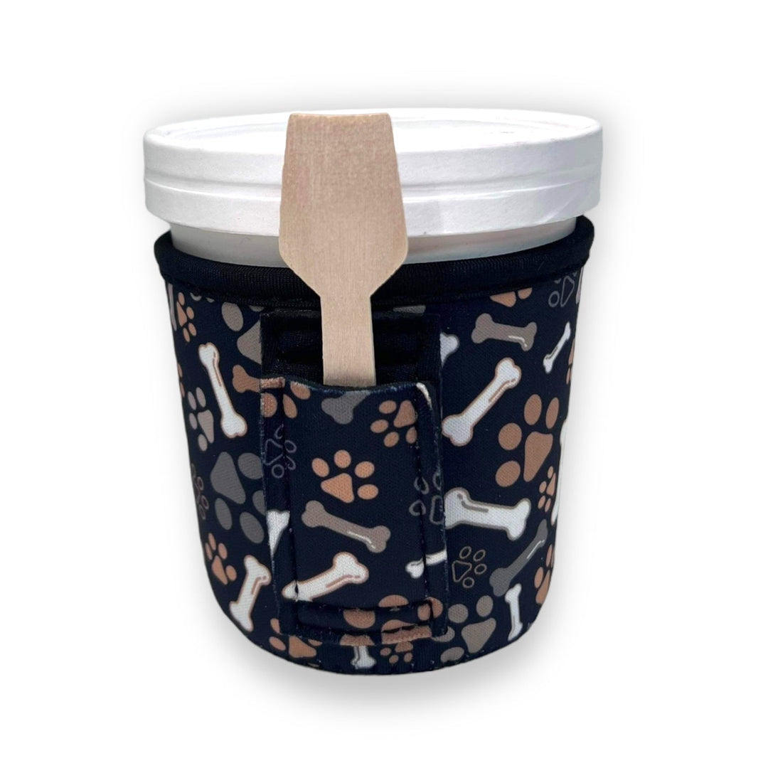The handle helps you not drop it while you are going ham on some ice cream and the pocket is perfect to hold your spoon in case you do need to set it down. Get your Pint Size Ice Cream Handler™ today and enjoy your favorite ice cream without the mess.