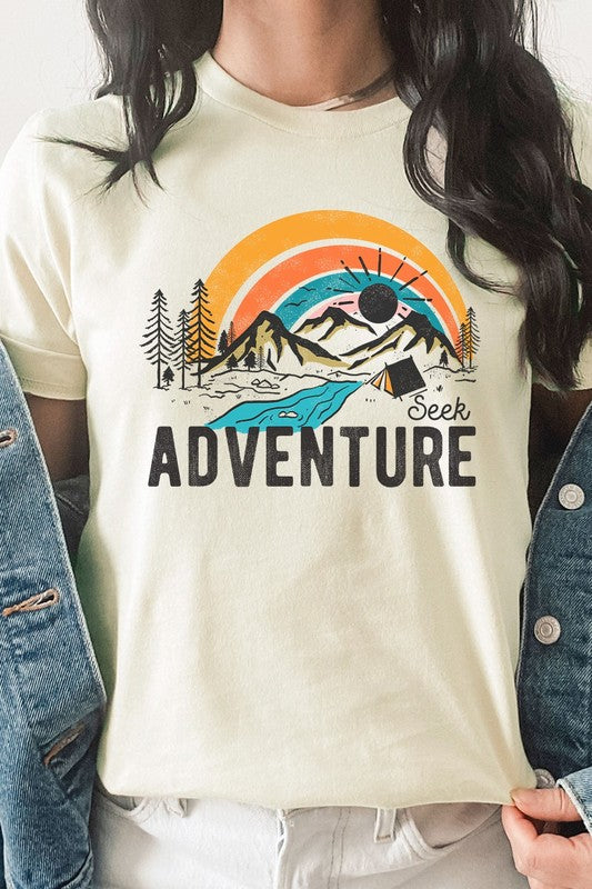 Introducing our Seek Adventure Forest Mountain Camp Graphic Tee, designed for nature lovers and adventure seekers. Most t shirt colors are 52/48 cotton/poly blend. White and Cream tees are 100% cotton, Ash tees are 99/1 cotton/poly. Available in various sizes, it's an ideal addition to outdoor retail stores and adventure-themed boutiques. Encourage your customers to embrace the great outdoors and embark on exciting journeys with our Seek Adventure Graphic Tee. By Kissed Apparel.