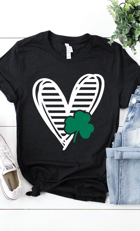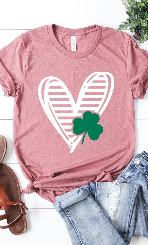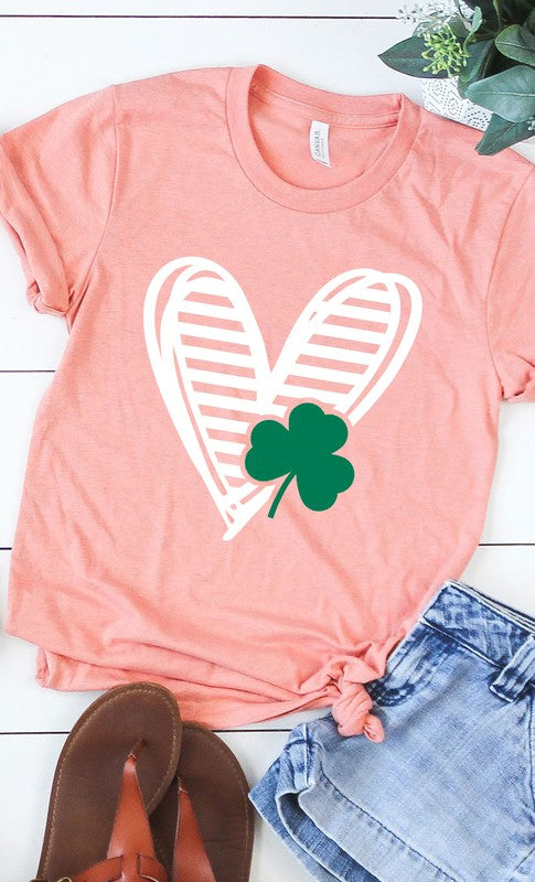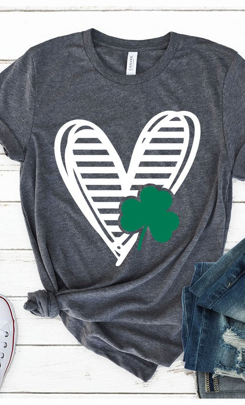 St Pattys Heart Graphic Tee. Most t-shirt colors are 52/48 Airlume combed and ringspun cotton/polyester, Athletic Heather & Black Heather are 90/10 airlume combed and ringspun cotton/polyester. White, cream, canvas red, lilac, mint are 100% cotton.