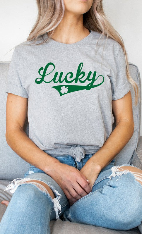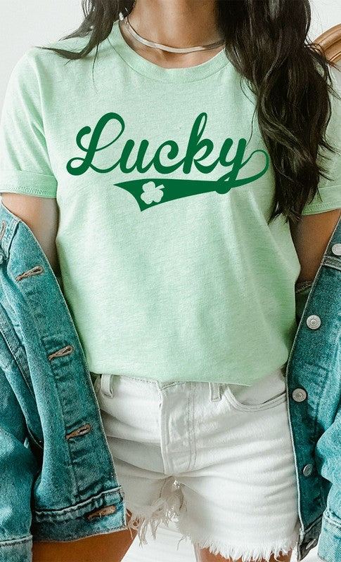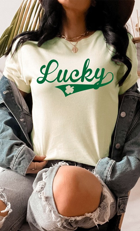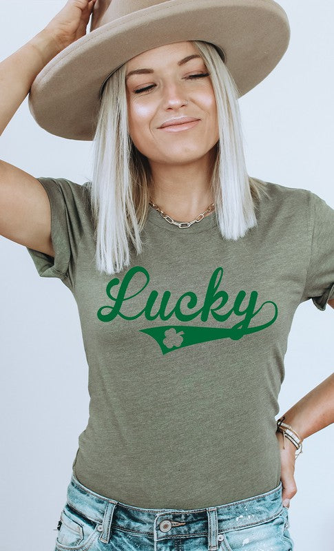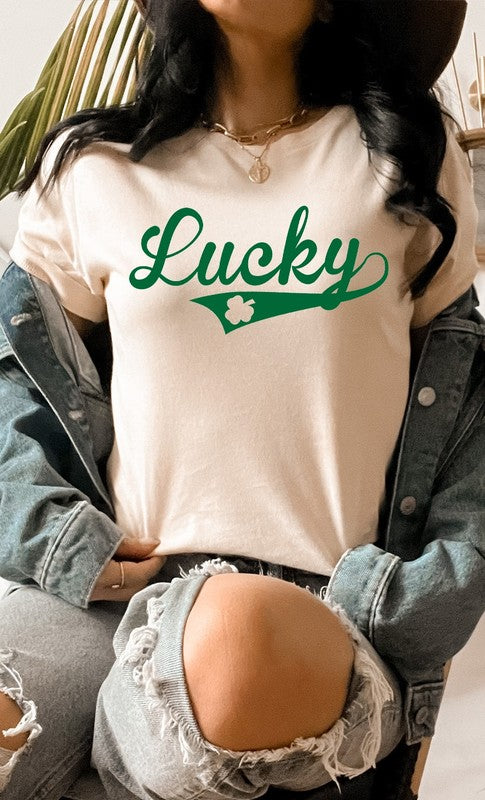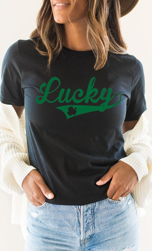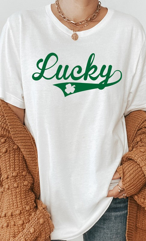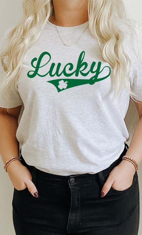 Vintage Lucky with Cutout Shamrock, St Patricks Day, PLUS SIZE Graphic Tee.